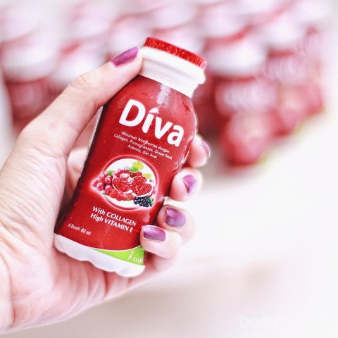 Fortunately, sekarang sudah ada inovasi baru minuman kecantikan dari Kalbe Nutritionals yang meluncurkan Diva Beauty Drink sebagai terobosan minuman kecantikan pertama di Indonesia. Kalau sebelumnya pilihan kita hanya dibatasi oleh suplemen dan vitamin kecantikan, sekarang sudah ada minuman kecantikan Diva Beauty Drinkyang lebih praktis dan mengandung vitamin dan kolagen tinggi. Di dalam Diva Beauty Drink terkandung 1.000 mg kolagen dan elastin peptide, superantioksidan, dan vitamin E. Yes, semua kebaikan yang diperlukan kulitmu sudah dikemas dalam satu botol Diva Beauty Drink. Hasilnya, kulitmu bisa lebih lembap, cerah, kencang, dan elastis. Kamu hanya perlu meminum 2 botol Diva Beauty Drink setiap hari dan gunakan selama 3 bulan untuk hasil yang optimal.