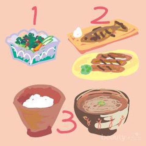 Makanan berserat seperti sayur dan buah ↁEProtein seperti daging atau ikan→Karbohidrat