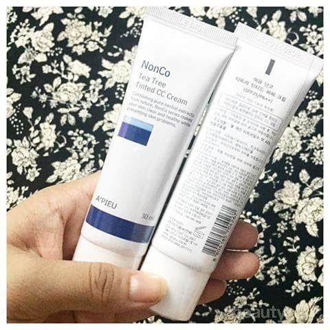 Produk yang mengandung Tea Tree Essence cocok untuk pemilik kulit berminyak karena dapat mengatasi kelebihn minyak pada kulit. Selain itu, produk ini juga diklaim sebagai CC cream yang digunakan untuk menenangkan kulit yang teriritasi sehingga menjadi halus. Apieu Nonco Tea Tree Tinted CC Cream SPF25/PA++ dapat melindungi kulit dari sinar UV dan menjadikan kulit lembut alami.
