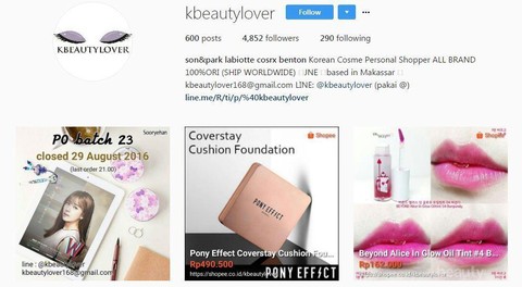 Kbeautylover merupakan online shop yang ada di Makassar, namun online shop ini menerima pengiriman ke seluruh dunia lho. Produk-produk yang dijual di Kbeautylover dijamin 100% asli. Kamu bisa order via email maupun melalui Line. Jika kamu tertarik untuk melihat produk-produk yang mereka jual, kamu bisa lihat akun Instagram mereka. Selain skincare Korea, online shop ini juga menjual beberapa makeup asal Korea. Jadi kalau kamu lagi mencari skincare dan makeup yang serba Korea, online shop ini bisa menjadi pilihan tepatmu!