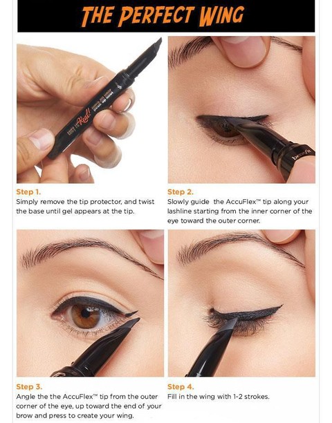 Ini karena bentuk aplikator AccuFlex pada bagian ujungnya didesain secara khusus. Jadi kamu bisa tetap menggambar garis pada mata dengan nyaman tanpa perlu terhalang oleh bulu matamu. Bahkan, aplikator ini akan menempel pada bulu matamu sehingga tidak akan menyisakan celah di antaranya. Lihat hasilnya, tak ada celah di antara eyeliner dengan bulu mata, kan?