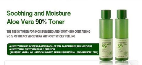 Aloe vera atau lidah buaya memang sudah terkenal dengan khasiatnya sebagai pelembap alami yang baik bagi wajah. Maka dari itu, Nature Republic pun memanfaatkan aloe vera menjadi bahan utama untuk produk tonernya. Mild toner ini diklaim dapat menenangkan kulit sambil secara lembut membersihkan pori-pori serta memberikan nutrisi pada kulit melalui kandungan aloe vera organik.