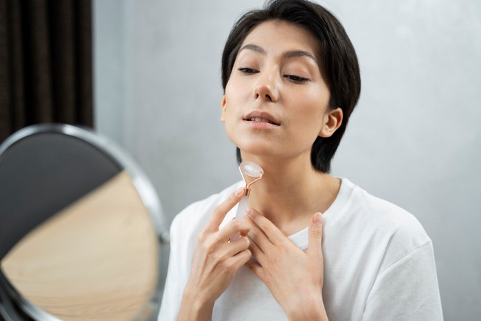 Penggunaan skincare yang mengandung retinol, peptide, dan collagen booster dinilai efektif untuk membantu mengurangi double chin. Dilansir dari American Academy of Dermatology (AAD), retinol bekerja dengan mempercepat regenerasi sel kulit dan merangsang produksi kolagen, sehingga kulit di area dagu menjadi lebih kencang dan elastis. Kulit yang kencang ini mampu menahan lemak di bawah dagu, sehingga tampilan double chin bisa berkurang secara bertahap.