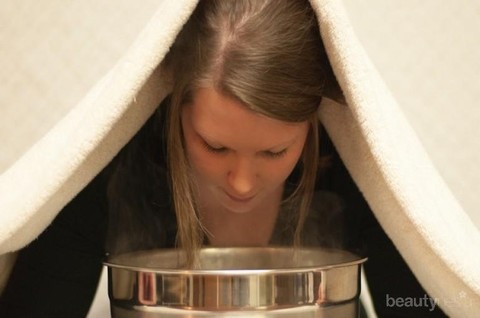 Bagi kamu yang sering melakukan perawatan wajah di klnik kecantikan mungkin sering melihat alat khusus yang digunakan untuk menguapi wajah, namun kali ini kamu hanya perlu menyiapkan baskom berisi air panas. Biarkan wajahmu terkena uap dari air tersebut selama 5-10 menit. Setelah itu keringkan wajah dengan menggunakan handuk atau tisu.