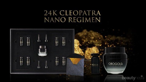 Orogold 24K Cleopatra Nano Regimen adalah satu set skin care yang terdiri dari 3 produk 24K Cleopatra Silk Cream, 24K Cleopatra Nano Serum, dan 24K Cleopatra Gold Sheet. Ketiganya memiliki fungsi yang berbeda-beda ya, ladies.