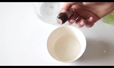 Pertama-tama, siapkan satu cup penuh air dingin di dalam wadah. Lalu, masukan 3 tetes essensial oil pilihan kamu ke dalam wadah.