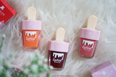 La Tulipe bukanlah brand baru, salah satu brand lokal kenamaan yang sudah lama berada di dunia industri kecantikan Indonesia. Tidak mau kalah dengan brand pendatang lainnya, bran ini juga memiliki produk lip tint. Pertama kali melihat kemasannya, pasti banyak wanita yang tertarik. Produk ini hadir dalam 3 warna Red Velvet, Peach Cake, dan Cotton Candy. Memiliki aplikator dengan bentuk doe-foot yang mungil. Teksturnya cair namun cenderung seperti liquid lipstick, selain itu memiliki staying power yang oke.