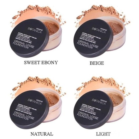 Mineral botanica original loose foundation merupakan bedak foundation berbentuk serbuk dan mengandung mineral. Berfungsi two way cake, kandungan mineral yang di kandungnya berfungsi mencerahkan wajah. Cocok di gunakan untuk kamu yang memiliki kulit normal hingga kulit kering. Banyak beauty influencer yang telah review bahwa produk ini ringan dan mudah menyatu dengan kulit. Ada 4 shade yaitu, light, natural, ebony, dan beige. Mineral botanica harga antara Rp57.000-Rp82.000.