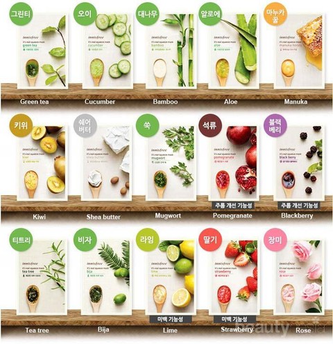 Terdapat 15 varian dari produk ini antara lain, Snail (smooth firming), Manuka Honey (richly moisturizing), Lotus (soothing and purifying), Blueberry (skin firming and radiance), Hyaluronic acid (moisturizing), Pearl (bright complexion), Pomegranate (revitalizing radiance), Damask rose (fresh moisture), Korean strawberry (skin brightening),Aloe (soothing relief), Collagen (skin firming), Teatree (soothing & clean), Ceramide (deep moisturizing), Snail (smooth firming), Lemon -(tone clarifying), Greentea (soothing & relief).