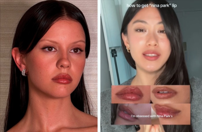 Teknik nina park lips menghadirkan blurred lips yang lembut dan natural. Tren bibir ini jadi highlight makeup trends 2026 karena mampu menciptakan make up flawless tanpa terlihat berlebihan/Foto: instagram.com/ninapark/tiktok.com/haley_kim_