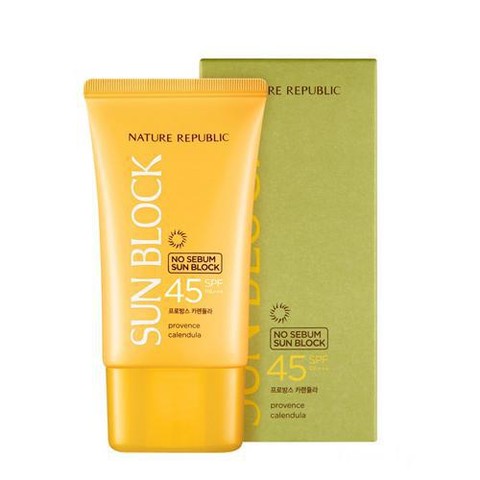 Foto: https://cosmetic-love.com/products/innisfree-daily-uv-protection-cream-no-sebum-spf35-paProvence Calendula No Sebum SPF45 PA+++ dari Nature Republic