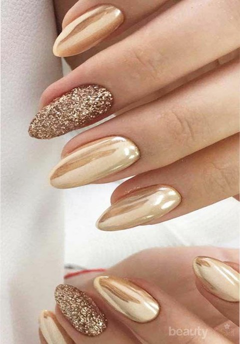 Jika kamu suka tampil glamor maka kamu bisa memilih nail art dengan warna gold. Kamu juga bisa menambahkan bling-bling atau glitter agar terlihat semakin menawan.