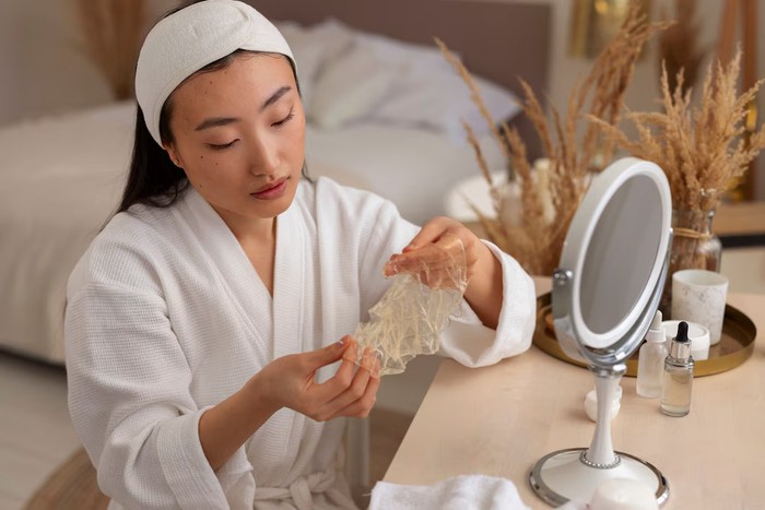 Pada malam hari sebelum hari Lebaran, kamu juga bisa menggunakan sheetmask yang mampu mencerahkan dan menghidrasi wajah, sehingga wajahmu akan terasa cerah dan plumpy di pagi hari.