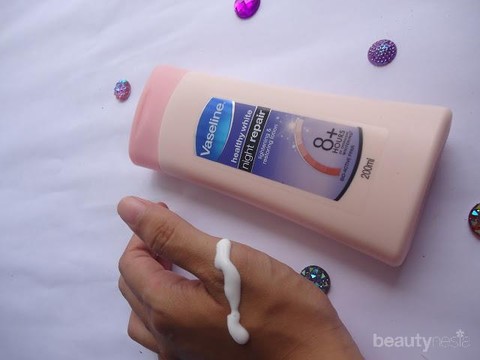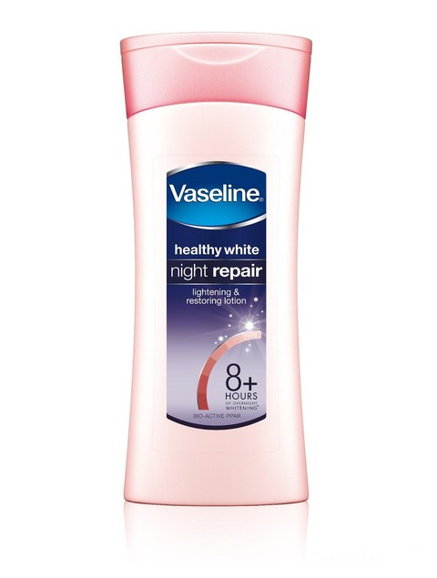 And here it is, lotion pencerah kulit malam hari yang bisa kamu andalkan, Vaseline Healthy White Night Repair. Produk tersebut merupakan varian dari rangkaian body lotion Insta Fair dari Vaseline yang diklaim dapat mencerahkan kulit dengan cepat. Jika kamu memiliki permasalahan kulit belang karena seharian berjemur di bawah sinar terik matahari, night body lotion tersebut merupakan pilihan tepat untuk memulihkan kembali keadaan kulitmu. Vaseline Healthy White Night Repair tersebut mengandung Bio Active PPAR yang menutrisi kulit dan mencerahkannya selama 8 jam.