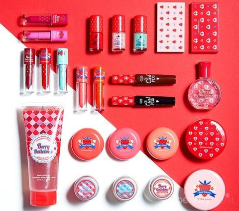 Produk kecantikan dari Etude House selalu tampil dengan kemasan yang lucu. Perilisan produk terbaru mereka hasil kolaborasi dengan Berry Delicious ini sangat cute! Dengan dominasi warna merah stroberi dan motif print stroberi, kamu pasti ingin membeli semuanya. Di dalam koleksi ini terdapat cream blush on, lipstick, eyeshadows, cat kuku, body milk, body scrub & wash, lip jam, lip jam scrub, dan sebuah sponge shower berbentuk roti. Yang menjadi item favorite adalah Etude House Berry Delicious Cream Blusher in #OR201, blush on ini dapat menyatu dengan sempurna di kulitmu. Kamu bisa mendapatkan koleksi Etude House Berry Delicious ini melalui web mereka.