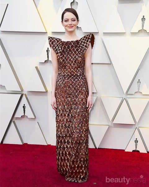 Foto: https://www.instagram.com/justjared/Emma Stone hadir dengan model rambut yang matching dengan dressnya, begitu pula dengan riasan matanya yang senada. Ia hadir dengan dandanan dari penata rias Racel Goodwin.