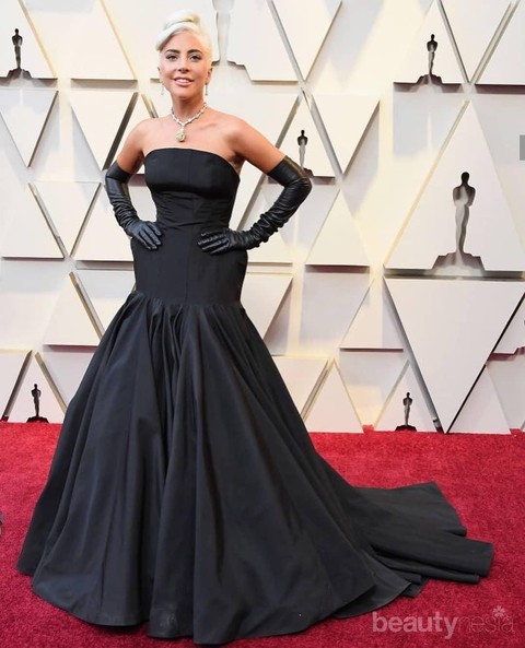 Foto: https://www.instagram.com/theoscarsworldTampil dengan busana dari Alexander McQueen, Lady Gaga yang tahun ini meraih nominasi Best Song lewat Shallow ini, berdandan dengan tema yang tidak jauh berbeda dari makeup nya pada acara Grammy, soft dan fresh. Make up artist nya, Sarah Tanno, menggunakan riasan mata dari Marc Jacobs Beauty dan shade biru keabu-abuan yang pucat di kelopak matanya.