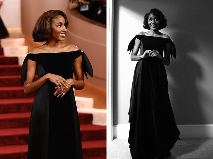 Rambut chin-length bergelombang penuh volume milik Ayo Edebiri menjadi salah satu momen hair standout malam itu. Dipadukan dengan eyeshadow plum yang shimmering, tampilan makeup yang digunakan memberikan dimensi warna yang tajam namun elegan.