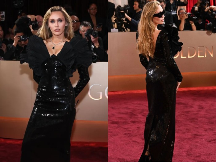 Mendapatkan nominasi untuk lagunya Dream As One, Miley Cyrus tampil dengan riasan yang edgy. Ia memilih smoky eyes bernuansa gelap yang dipoles halus sehingga menciptakan dimensi dramatis tanpa terlihat berat. Kulit wajah dibuat mulus dengan hasil akhir natural-satin, sementara bibir dipoles dengan warna nude glossy yang menyeimbangkan keseluruhan tampilan.