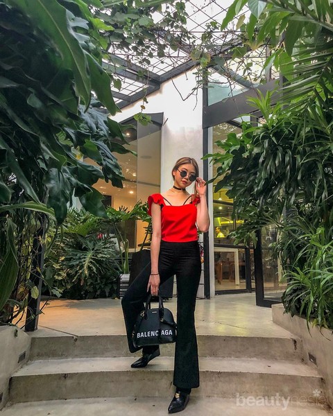 Foto: https://www.instagram.com/clarissatanoe/Berbeda dengan Putri, Clarissa Tanoe anak dari Hari Tanoe ini sering memilih menggunakan outfit yang chic dan classy. Clarissa berpose sambil mengenakan top berwarna merah yang dipadukan dengan celana model flare berwana hitam pekat. Konsep black and red terlihat begitu menonjol dengan dominasi hitam dari tas merek Balenciaga. Chic banget kan Ladies gaya elegan dari Clarissa Tanoe ini?