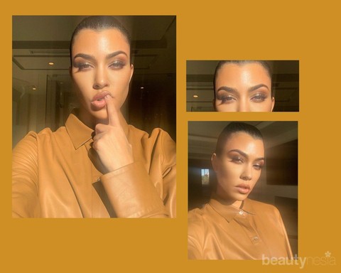 Pada foto di atas, Kourtney memilih menggunakan warna cokelat muda sebagai dasar eyeshadow-nya. Setelah itu, Kourtney menumpuknya dengan warna cokelat yang sedikit lebih gelap. Agar lebih on point, Kourtney menambahkan sentuhan highlighter pada bagian tengah kelopak matanya.