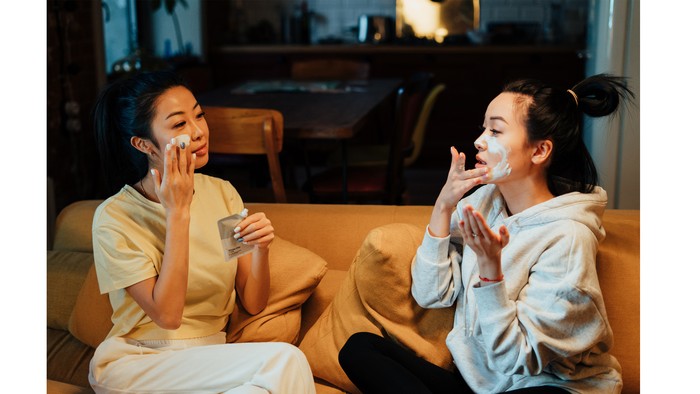Menggunakan tabir surya atau sunscreen di pagi hari dapat melindungi kulit dari paparan sinar matahari yang dapat memicu penuaan kulit. Lalu mengaplikasikan cleanser atau pembersih di malam hari dapat membersihkan pori-pori dan mencegah jerawat.