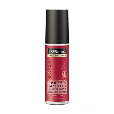 Foto: https://i5.walmartimages.com/asr/752fcdce-5236-4302-802c-f56f2921fcc6_1.0d7b2ab8db62e863882b9db222a71853.jpegTresemme Keratin Smooth Shine Serum menawarkan hasil perawatan rambut yang "selembut sutra" dengan hasil yang tidak berminyak. Serum ini diformulasikan dengan minyak keratin dan marula yang dikenal sebagai kandungan mujarab untuk rambut sehat.