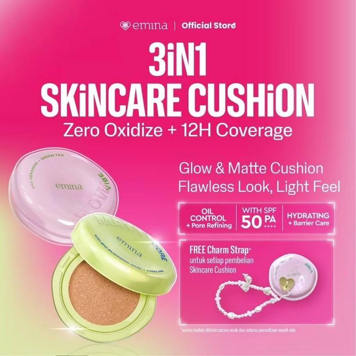 Emina tidak mau ketinggalan untuk merilis cushion di bulan ini. Bertajuk 3in1 Skincare Cushion dengan Skin Adaptive Technology yang dirancang menyatu dengan kulit. Selain itu, Skincare-Infused Formula yang akan terasa ringan dan nyaman untuk digunakan sehari-hari.