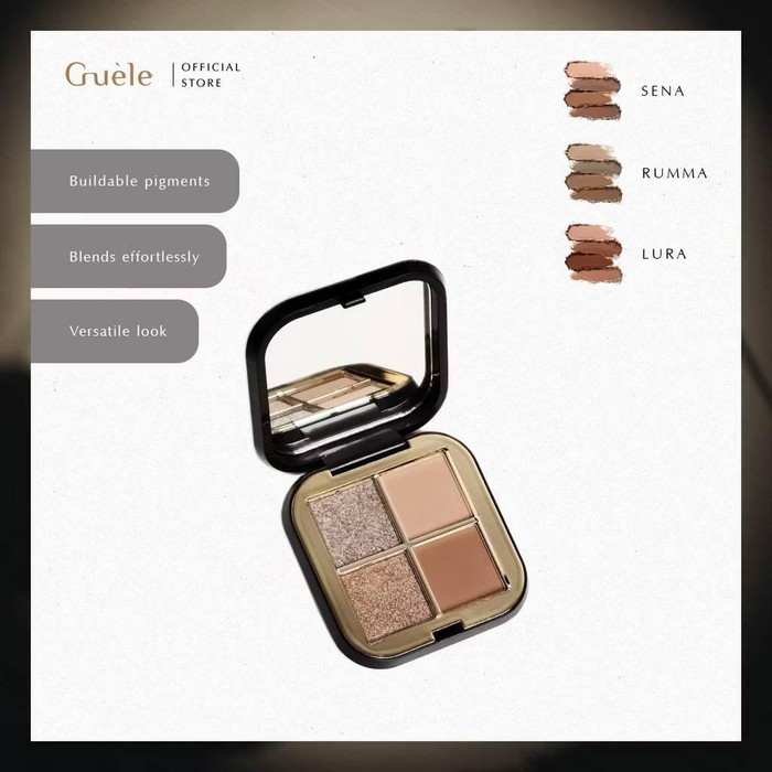 Bukan complexion, kali ini Guele mengeluarkan produk eyeshadow palette dengan 4 warna yang intens dalam 1 produknya. Produk ini sangat memiliki pigmentasi yang tinggi dan sangat blendable serta buildable.