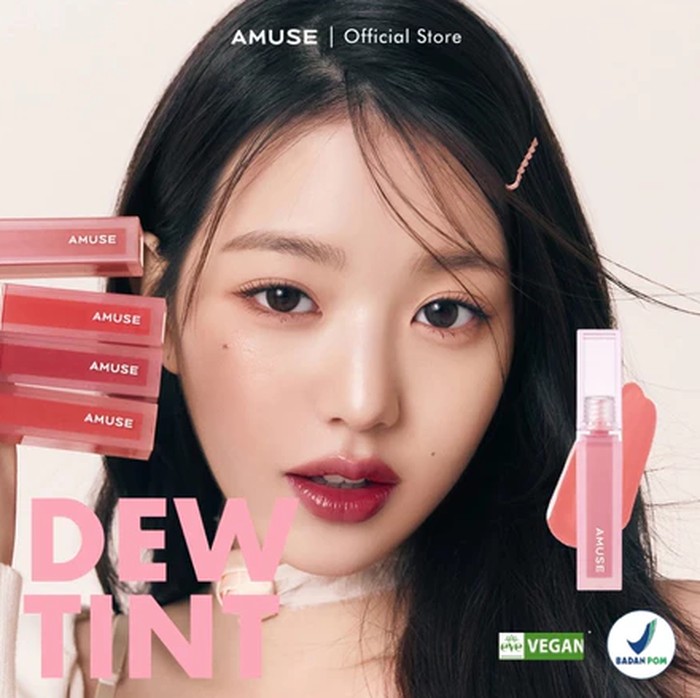 Dew Tint merupakan seri lip tint terlaris dari brand AMUSE. Diformulasikan dengan bahan-bahanalami seperti mango extract, apple extract, dan vitamin E, lip tint ini sudah mendapatkan sertifikasi vegan dari France Eve Vegan, lho!