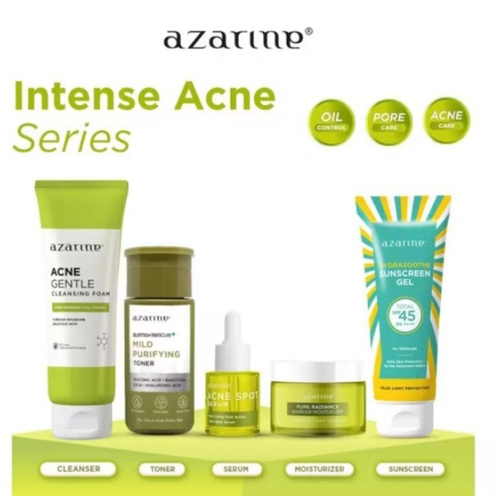 Azarine punya paket skincare untuk merawat jerawat dan pori-pori, yang terdiri dari 5 produk. Pertama, ada Acne Gentle Cleansing Foam dengan ukuran 75 ml, yang memiliki kandungan salicylic acid, sehingga cocok untuk merawat kulit berjerawat dan mengontrol minyak berlebih.