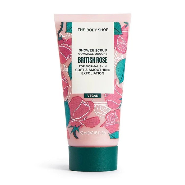 The Body Shop British Rose Shower Scrub adalah produk yang mengandung rose extract. Scrub mudah diaplikasikan saat mandi, cukup efektif dalam membersihkan, dan juga membantu mengangkat sel-sel kulit mati, sehingga kulit terasa halus dan lembut setelah setiap penggunaan.