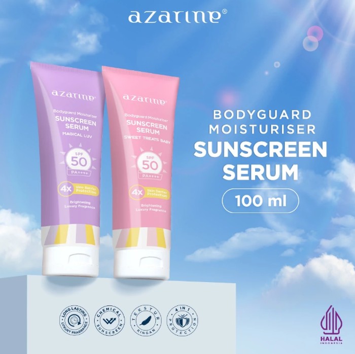 Setelah sukses dengan sunscreen-nya, Azarine juga merilis body sunscreen yang juga jadi favorit banyak orang. Ada dua varian, yakni Magical Luv Body Guard Sunscreen Serum dan Sweet Treats Baby Body Guard Sunscreen Serum.