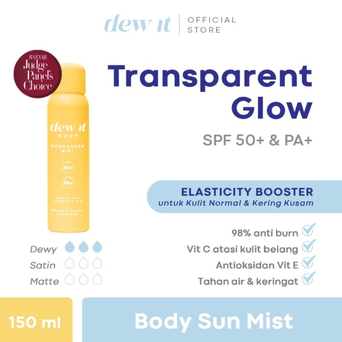 Brand lokal, Dew It merilis sunscreen multifungsi yang bisa untuk wajah dan badan. Produk Body Sun Mist ini juga praktis karena berbentuk mist dan cukup disemprotkan ke area wajah maupun badan.