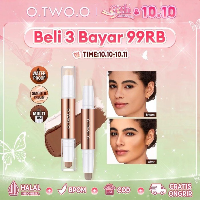 O.TWO.O Makeup Magic Highlight Contour & Stick hadir dengan formula yang ringan dan tekstur yang halus, sehingga nyaman digunakan. Produk ini memadukan contour dan highlighter dalam satu stik praktis yang membantu memberikan dimensi sekaligus kilau sehat pada wajah, Beauties.