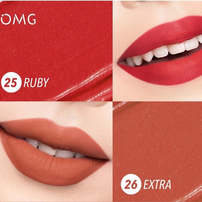 Rekomendasi pertama ada OMG OH MY GLAM Mattelast Lip Cream dengan shade 25 Ruby. Formula terbarunya menghasilkan tampilan bibir matte yang tahan lama hingga 12 jam dan transferproof, ditambah dengan Color Advanced Tech™ yang memberikan hasil warna lebih intens.