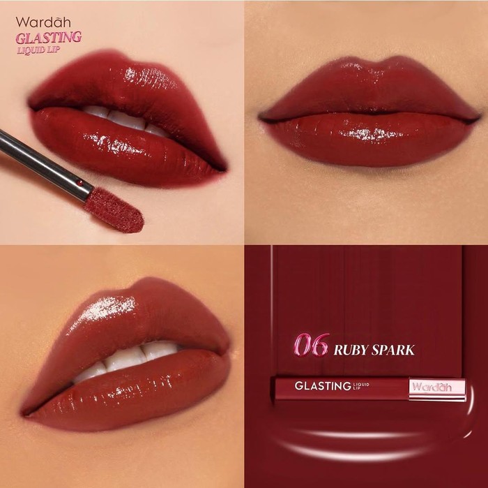 Kalau kamu menginginkan lipstik merah yang glossy, Wardah Glasting Liquid Lip shade 06 Ruby Sparks wajib kamu miliki. Varian ini pas banget untuk kamu yang mau tampil mencuri perhatian saat Natal. Warna merah darahnya cocok untuk kulit warm undertone, sementara kilaunya yang mewah bikin bibirmu terlihat plumpy. Nggak cuma itu, ada pula shade 07 Rouge Flare yang punya hint oranye.