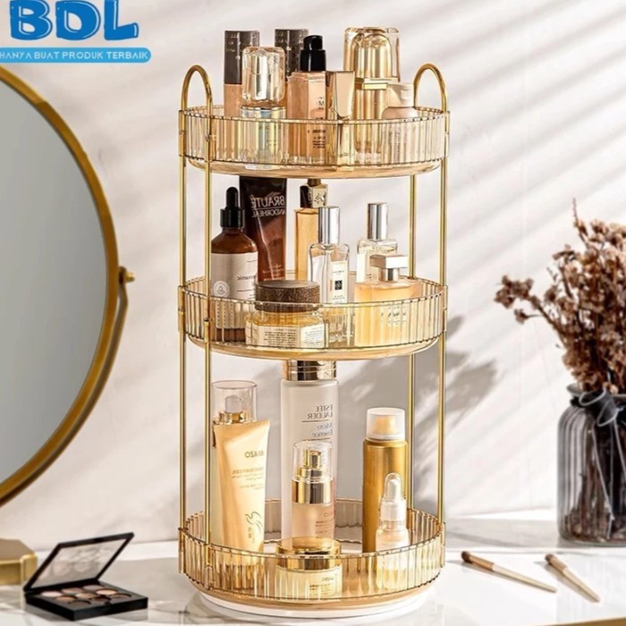 Rak putar cukup banyak digemari, terutama oleh pecinta kosmetik dan skincare. Desain putarnya dapat memudahkanmu untuk menemukan produk kosmetik tanpa harus mengeluarkannya satu per satu. Terbuat dari bahan plastik yang aman dan tahan lama. Rak ini juga memiliki bentuk ramping dengan tiga tingkatan sehingga tidak menyita banyak ruang.
