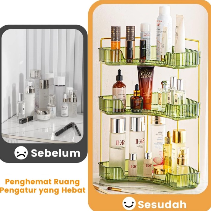 Rak kosmetik membantu menyimpan seluruh produk kosmetik kamu agar lebih terorganisir sehingga mudah untuk kamu temukan. Jadi, kamu tidak perlu memerlukan banyak waktu untuk mencari produk tertentu. Bahan rak pun beragam mulai dari acrylic, plastik, atau kayu, Beauties.