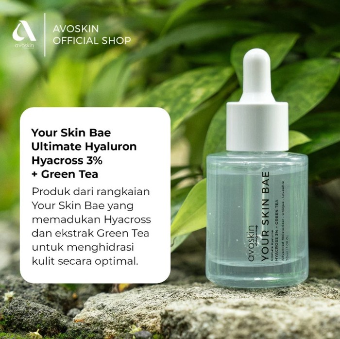 Tidak hanya green tea baik untuk tubuh, tetapi baik juga untuk kulit wajah. Seperti serum dari Avoskin, Hyacross yang termasuk dalam series Your Skin Bae. Serum ini mengandung hyacross 3% dan green tea, yang berfungsi untuk menjaga kelembapan kulit dan merawat skin barrier.