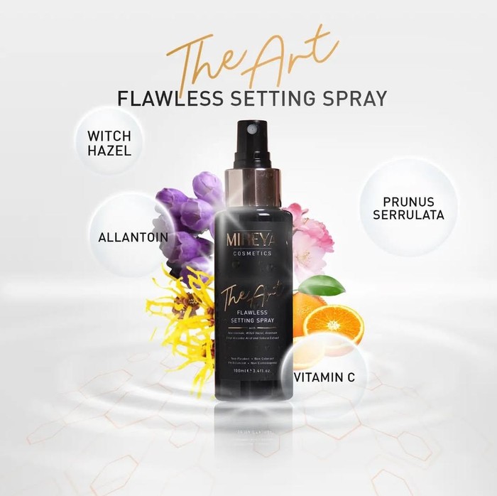 Rekomendasi setting spray pertama datang dari merek Mireya dengan produknya The Art Flawless Setting Spray. Setting spray ini hadir dengan improved formula berupa butiran spray yang lebih halus dan ringan. Formulanya mampu memberikan efek blurring pori-pori dan membantu makeup tahan lama dengan hasil akhir flawless glow.