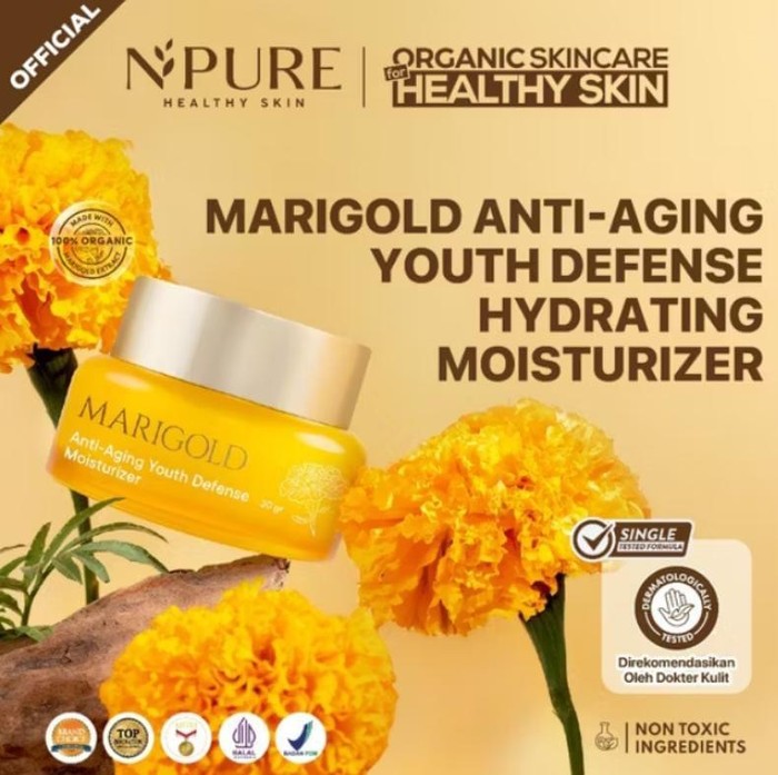 Npure juga punya produk khusus untuk mengatasi flek hitam, nih. Menariknya, produk ini diformulasikan dengan 100% ekstrak bunga Marigold, yang ampuh dalam menjaga hidrasi kulit.
