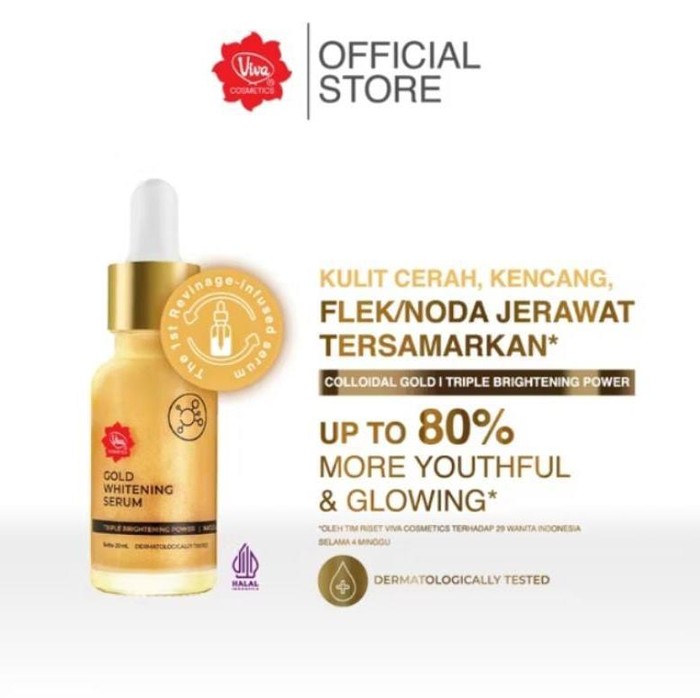 Viva punya produk khusus flek hitam berupa serum dengan kandungan Niacinamide 4%, Vitamin C 2%, hingga Revinage, berupa turunan retinol yang lebih lembut. Disempurnakan dengan Colloidal gold, yakni partikel emas yang berfungsi dalam meremajakan sel kulit.