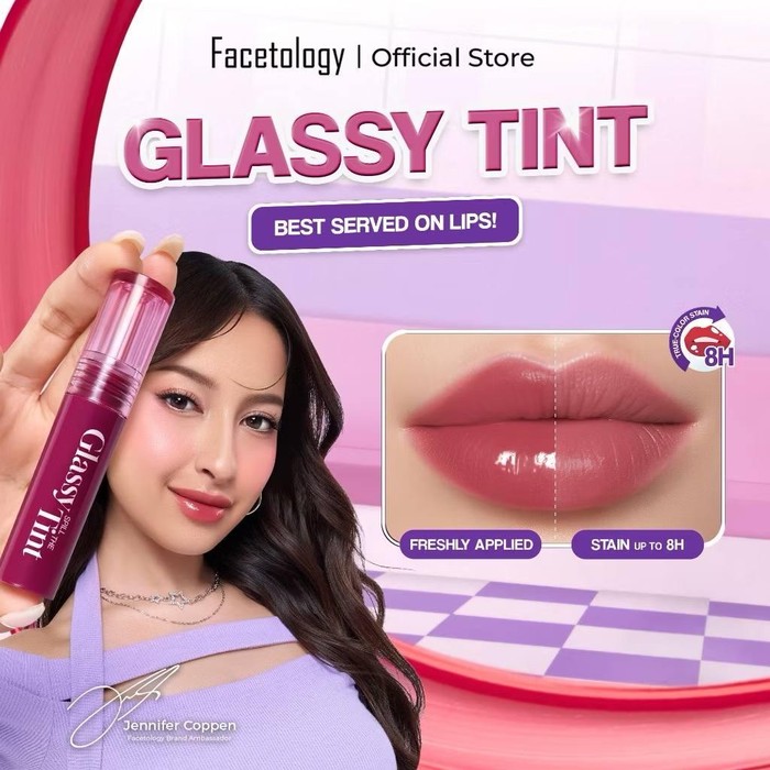 Facetology meluncurkan gebrakan baru dengan merilis Glassy Spill The Tint. Produk ini diformulasikan sebagai solusi untuk bibir kering dan gelap karena dapat melembapkan bibir dengan pigmentasi yang juara.