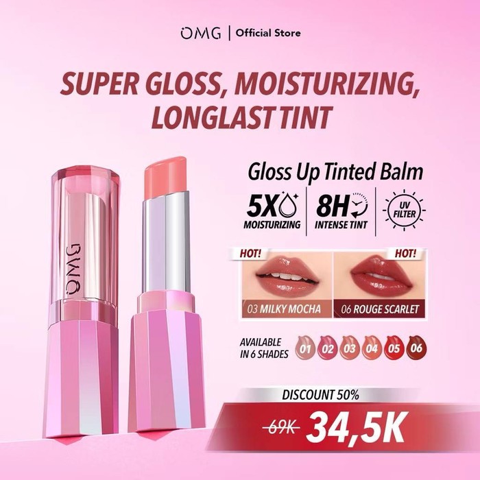 Setelah heboh dengan lip vinyl, kali ini OMG meluncurkan Gloss Up Tinted Lip Balm. Bukan sekadar pelembap bibir, produk ini juga bisa berperan sebagai lip tint dan lip gloss, lho! Hasilnya yang glossy akan membuat bibir tampak seperti kaca.