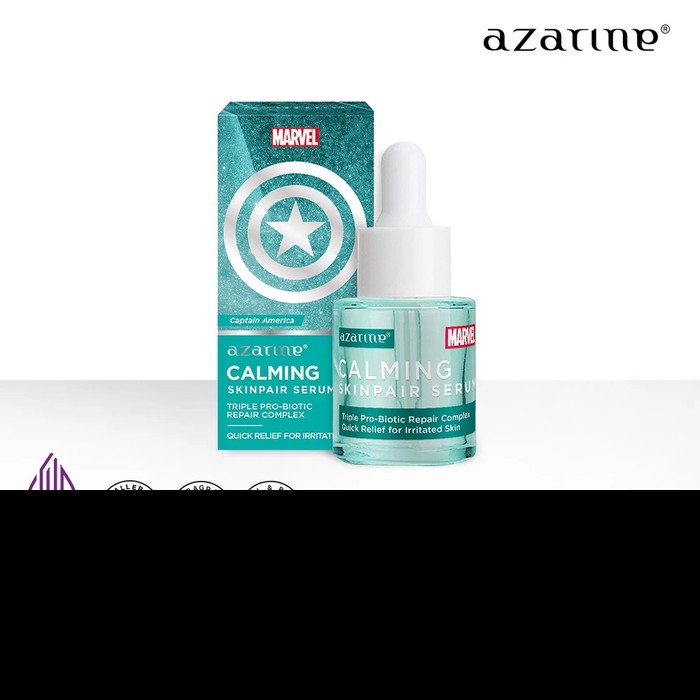 Berkolaborasi dengan Marvel, Azarine mengeluarkan serangkaian serum dengan klaim yang berbeda-beda. Salah satunya ialah Calming Skin Pair Serum yang akan membantu menenangkan kulit iritasi dan mengatasi segala permasalahan kulit sensitif.