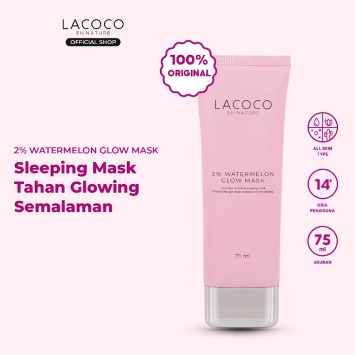 Lacoco Watermelon Glow Mask ini sempat viral pada awal perilisannya dan menjadi produk favorit Suhay Salim. Produk ini merupakan sleeping mask yang berfungsi untuk melembapkan dan membuat kulit menjadi lebih kenyal serta halus.