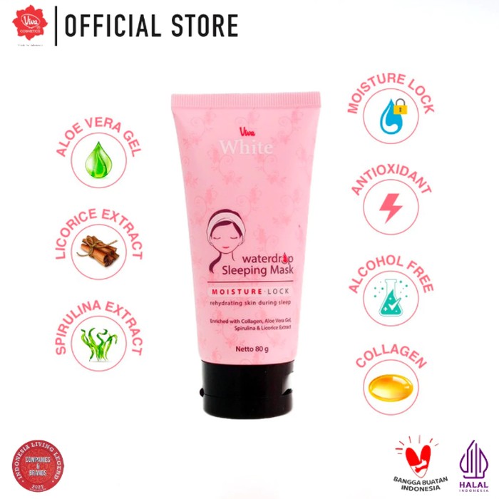 Sempat viral di platform TikTok, Viva merilis Waterdrop Sleeping Mask dengan harga yang terjangkau. Sesuai namanya, produk ini dilengkapi dengan teknologi waterdrop yang memberikan tetesan nutrisi dan kelembapan di lapisan epidermis kulit.