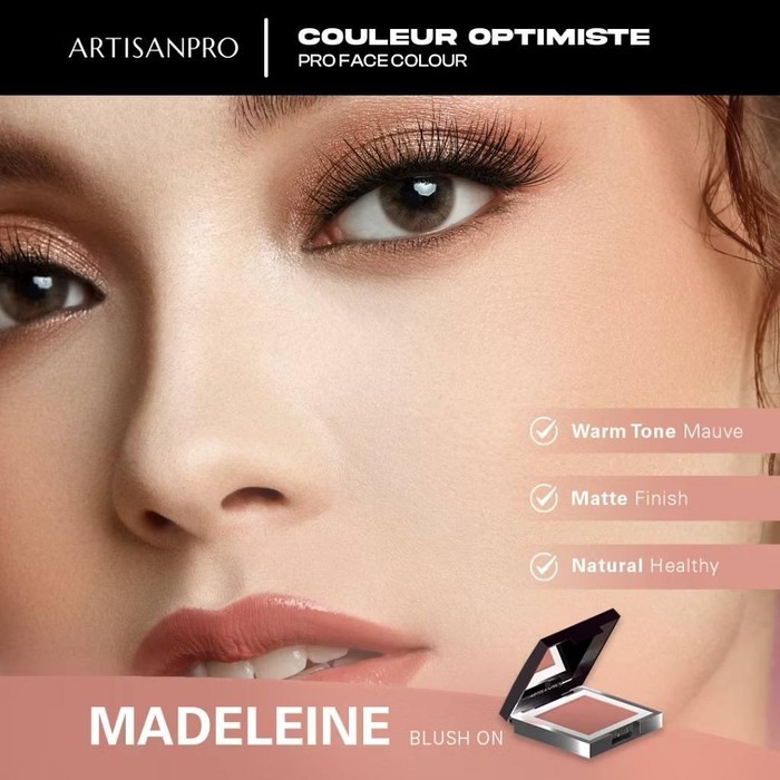 Banyak digunakan oleh MUA, kamu bisa coba Couleur Optimiste Pro Face Colour dengan shade Madeline dari ARTISANPRO. Memiliki warna mauve yang soft dengan memberikan sedikit hint peach yang sangat cocok terutama untuk kamu yang memiliki warm skin tone.