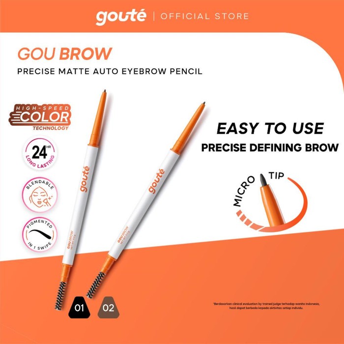 Salah satu produk Goute yang cukup populer adalah Goute Goubrow Matte Eyebrow Pencil. Pensil alis Goute ini dapat membentuk alis natural semakin mudah dan cepat dengan ujungnya yang kuat, presesi, dan blendable.